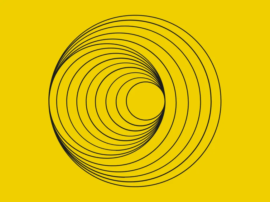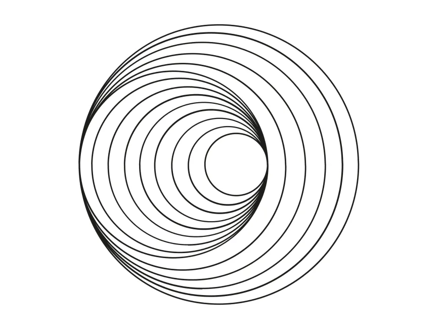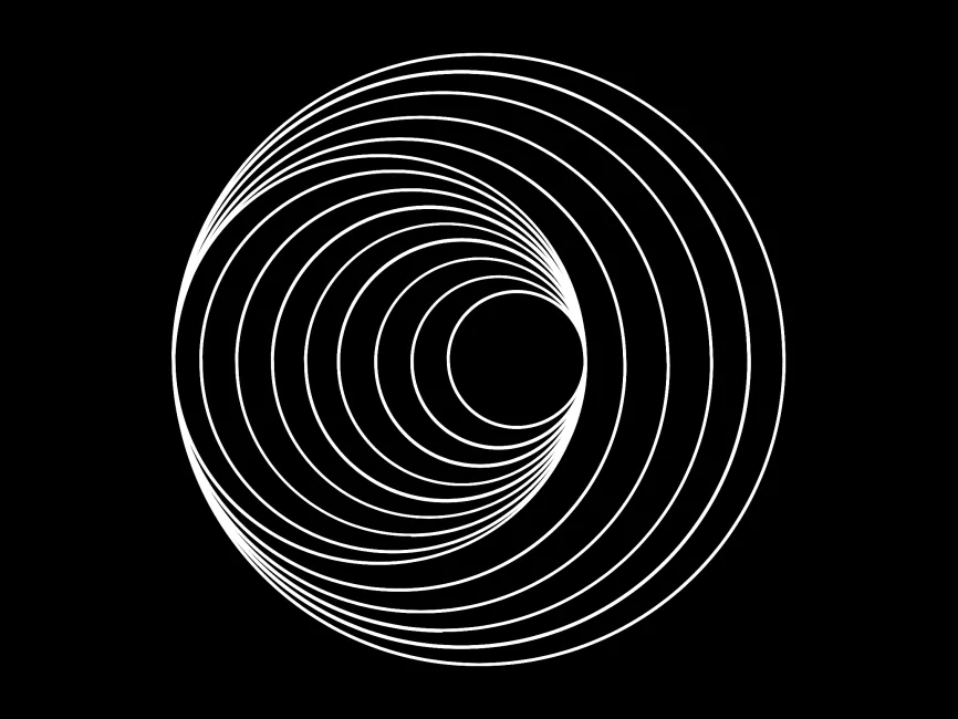 - Mathematical & Precise: The gradual scaling and offset of the circles produce an optical illusion of movement and depth.