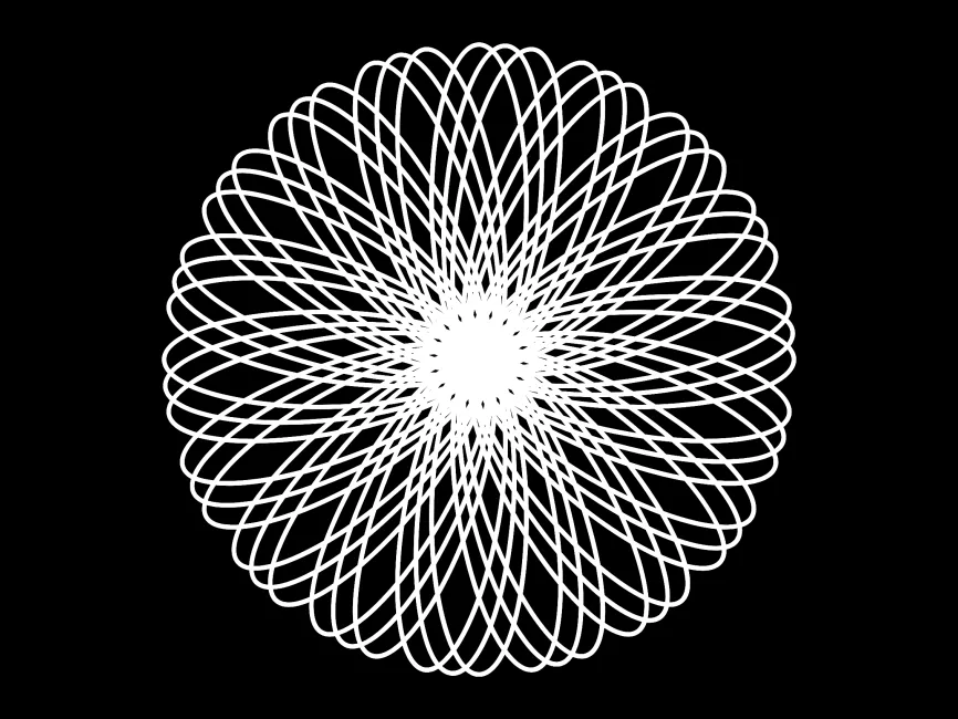 This vector shape presents an intricate and mesmerizing Hypnotic Spirograph Bloom, a radial, floral-inspired design composed of multiple overlapping elliptical curves. Its hypnotic symmetry and delicate yet structured form make it a versatile asset for logo design, branding, and decorative elements across various industries.
