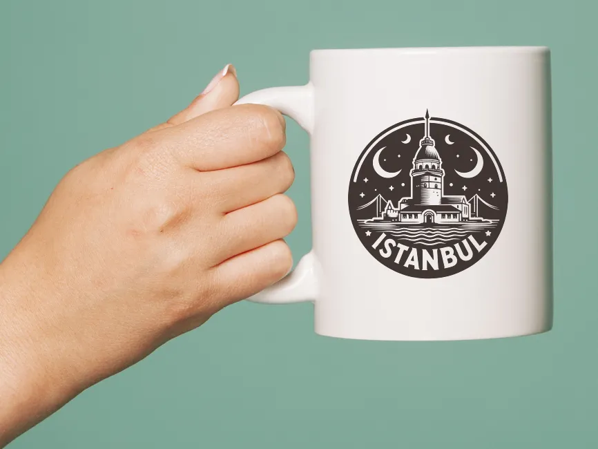 This logo template features an emblem-style circular design with a detailed illustration of the Maiden’s Tower (Kız Kulesi) in the center, a well-known historical landmark of Istanbul, Turkey. The tower is framed by two crescent moons, symbolizing Turkish culture and history, while waves at the bottom depict its location in the Bosphorus. The word "ISTANBUL" is prominently placed at the bottom in a clean, bold font, reinforcing the city's identity.