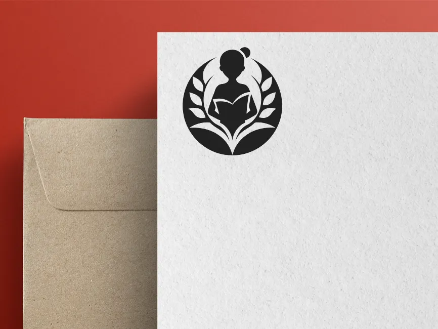 The combination of a female figure and a book within a laurel-inspired design makes this logo especially fitting for organizations focused on female education, child literacy, and academic excellence.