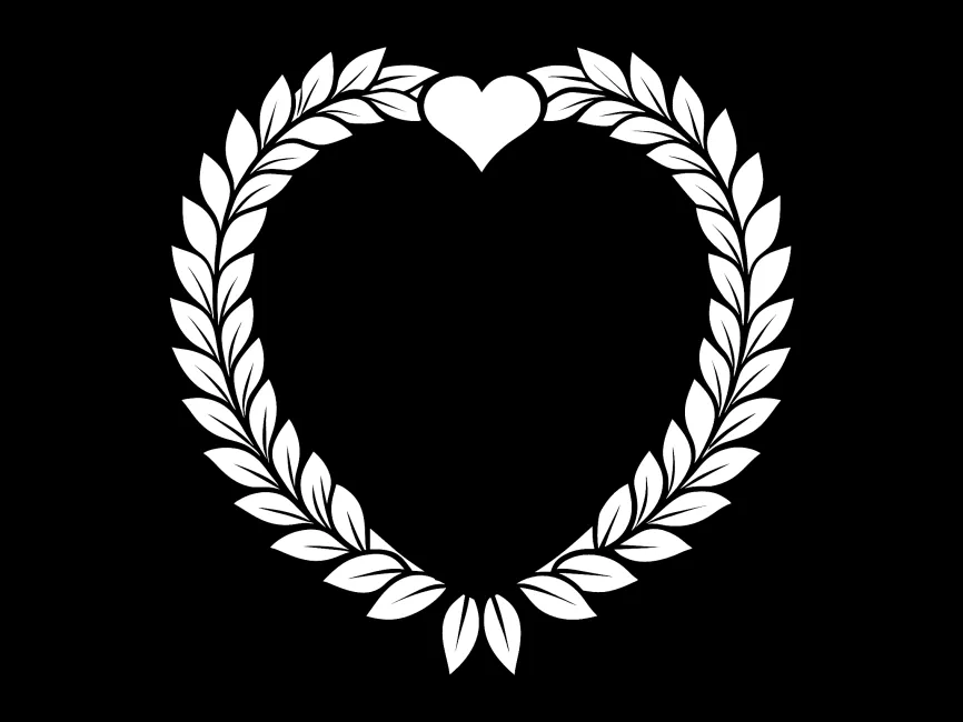 This laurel heart wreath is a beautifully symmetrical vector shape featuring a heart accent at the top. The refined arrangement of leaves gives it a classic, elegant, and timeless appearance, making it ideal for branding in weddings, beauty, and luxury markets.