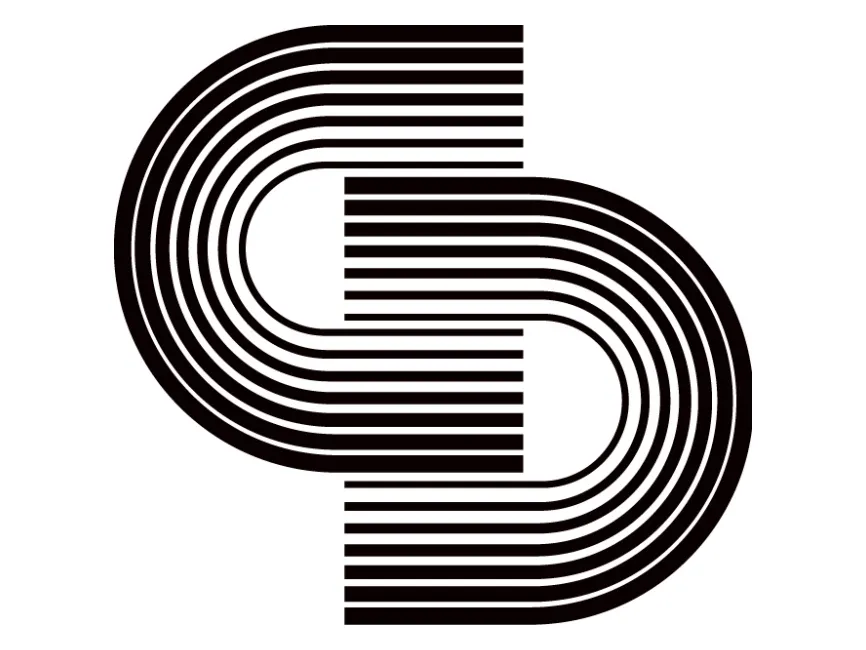 The logo features a monogram-style representation of the letters "S" and "CD," crafted with evenly spaced linear elements. The design maintains a clean and minimalist aesthetic while still being visually striking. The contrast between the curved and straight segments enhances the overall uniqueness, making it a versatile branding element.