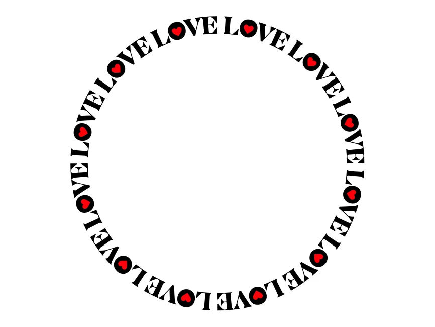 The balance of black typography and red heart symbols creates strong visual contrast, ensuring readability while maintaining a decorative and playful aesthetic. The circular composition adds a sense of wholeness, unity, and eternity, which aligns with the concept of love and emotional bonds.