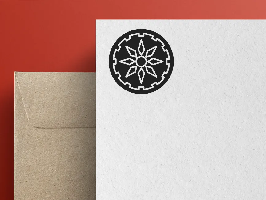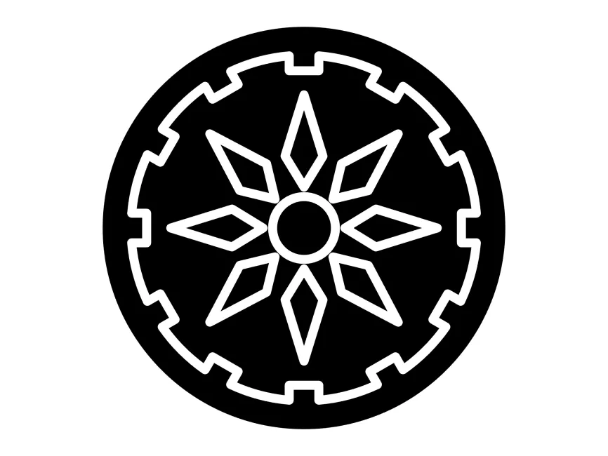 This vector emblem is a striking blend of industrial mechanics and geometric elegance, making it a powerful design asset for branding. The shape consists of a central starburst with eight elongated diamond-shaped spokes, enclosed within a cog-like circular frame. This combination symbolizes mechanical efficiency, technological advancement, and dynamic energy, making it an excellent choice for engineering, automotive, and tech-related applications.