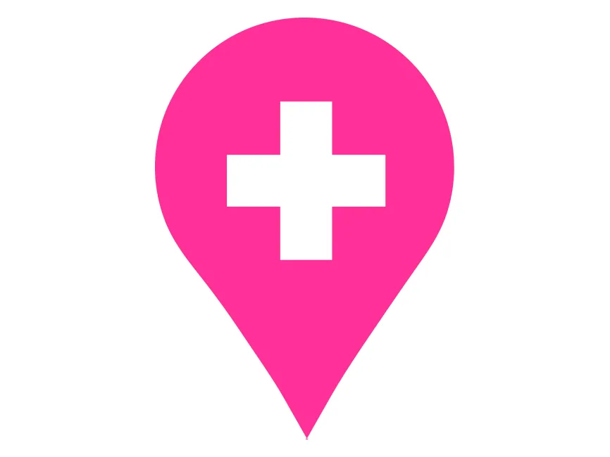 The bold pink color adds a modern and eye-catching appeal, often associated with healthcare awareness campaigns, particularly those related to women’s health and emergency services. The white cross in the center ensures strong visibility and conveys a sense of safety, trust, and medical support.