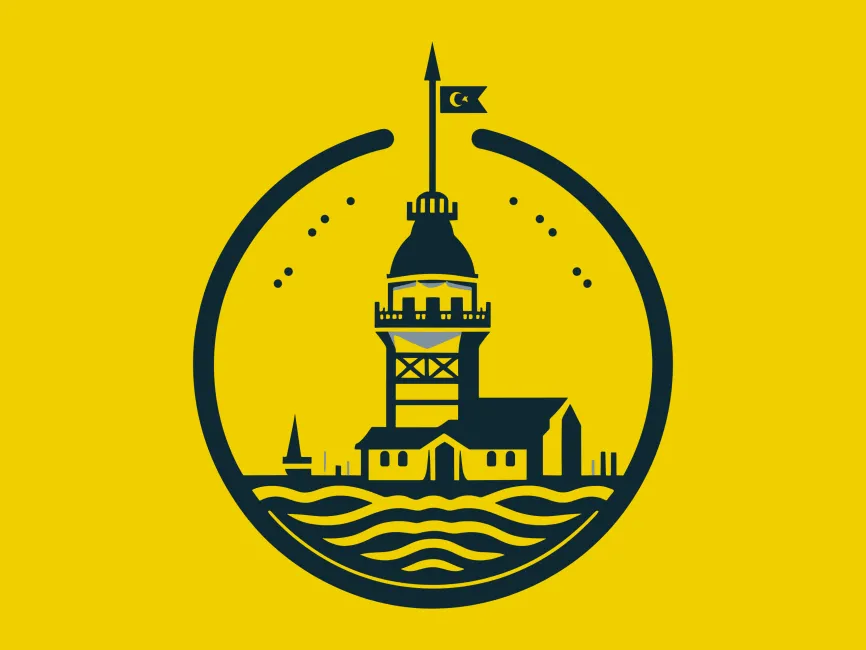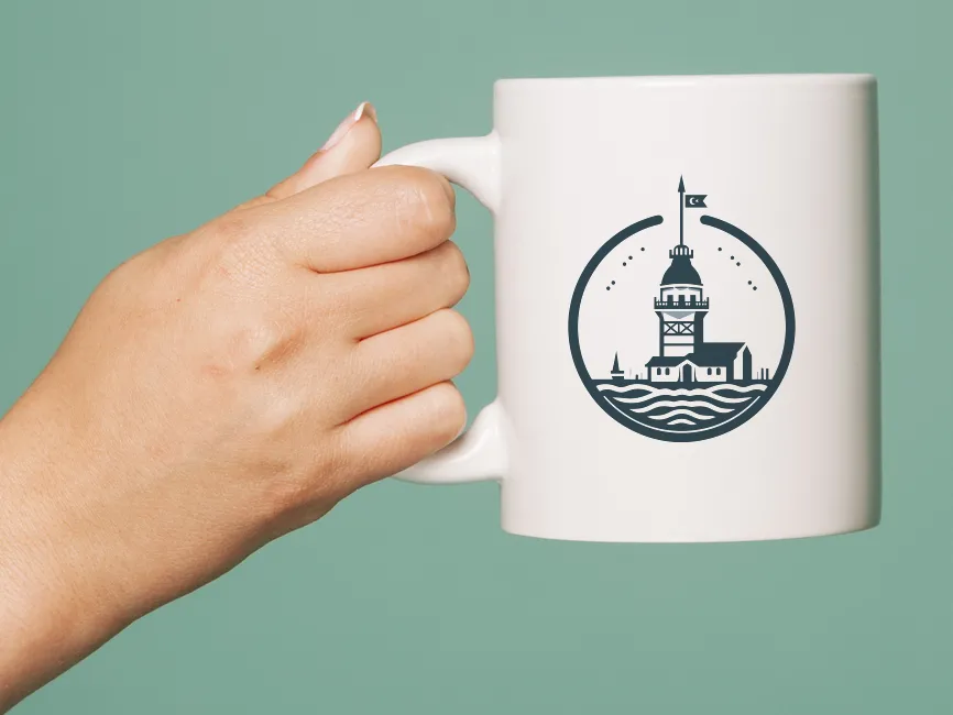 This logo template features a minimalist, line-art depiction of the Maiden’s Tower (Kız Kulesi) in Istanbul, enclosed within a circular frame. The simple yet elegant design emphasizes the tower’s structure, surrounding waves, and birds in the sky, creating a sense of heritage and tranquility. The monochrome color scheme makes it highly versatile for branding.
