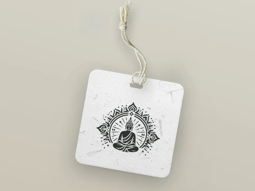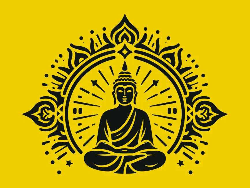 Radiant Energy: The lines extending from the Buddha symbolize spiritual light and awareness, while the stars and decorative elements add depth and universal symbolism.
