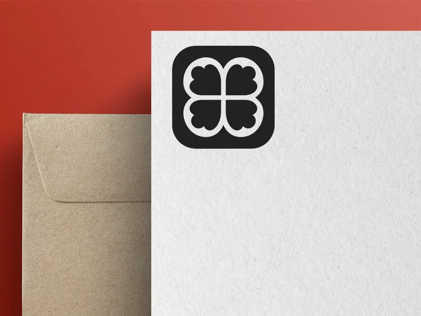 Download Modern Black Four Leaf Clover logotype PDF vector and SVG logo template, free vector Format and PNG Transparent Format.