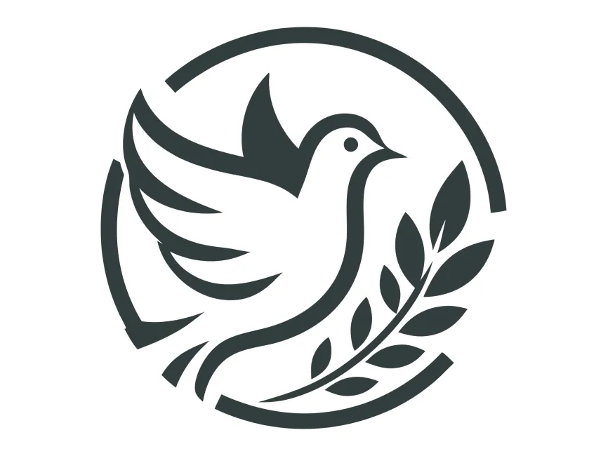 Download Modern Dove Bird with Olive Wreath in Circle logotype PDF vector and SVG logo Vector Format and PNG Transparent Format.