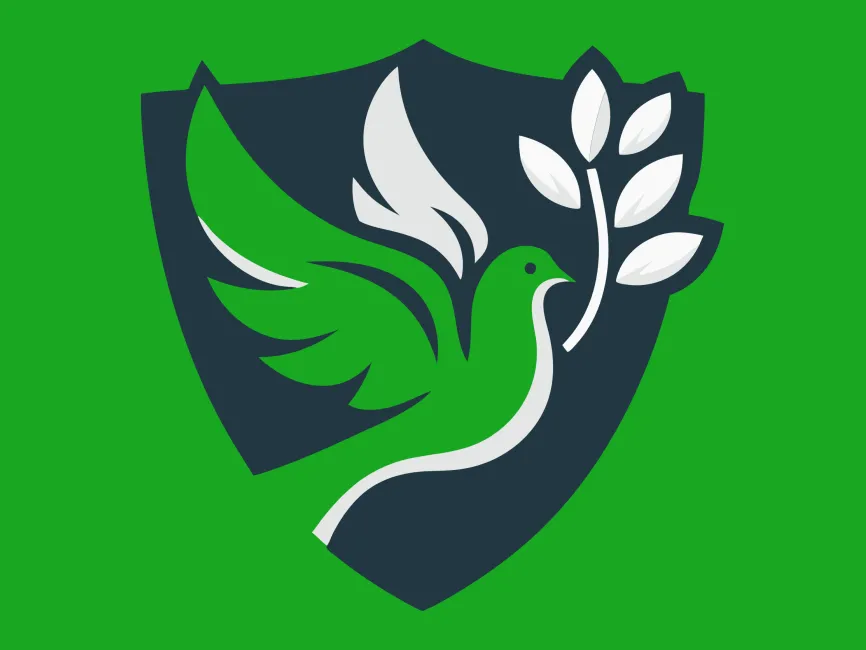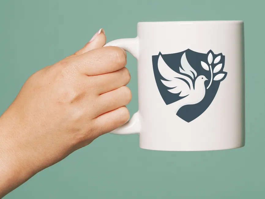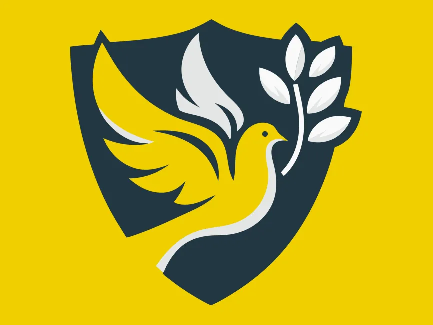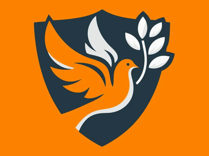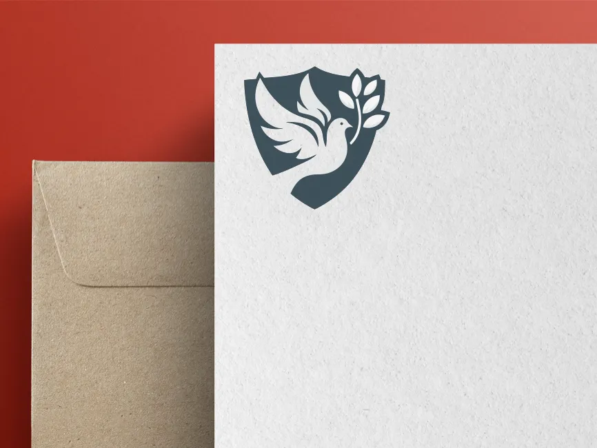 Download Modern Dove Bird with Wreath in Shield Shape logotype PDF vector and SVG logo Vector Format and PNG Transparent Format.
