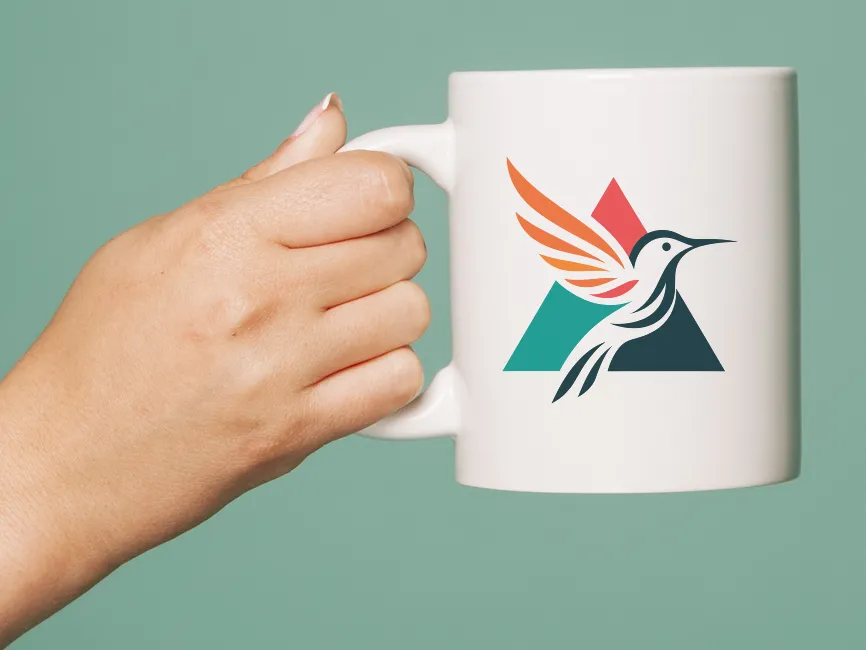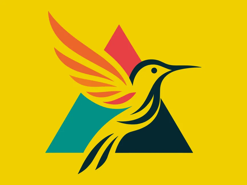 The triangle symbolizes stability, strength, and growth, while the hummingbird represents speed, adaptability, and focus—making this logo brand ideal for businesses positioned at the intersection of nature and innovation.