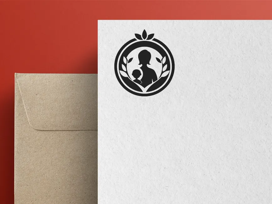 This is a figurative emblem, not based on any letterform. It is a clean and professional vector logo ideal for identity use where family, parenting, or maternal themes are central. The smooth curves and layered symmetry make the logo memorable and adaptable across various media.