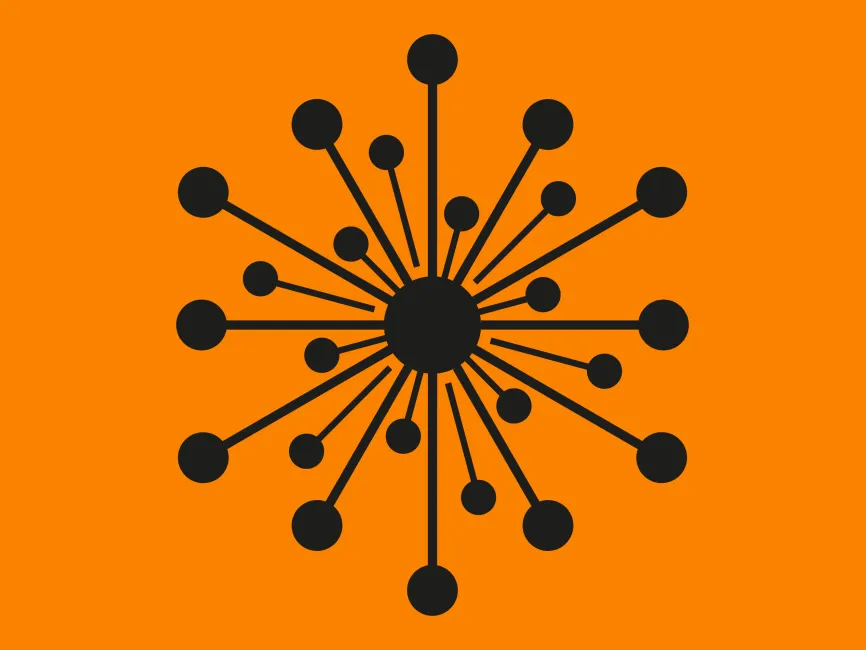 This abstract radial design resembles a neural network, molecular structure, or digital connection hub, making it a powerful symbol of communication, data flow, and technological advancement. With its central core branching into multiple interconnected nodes, this vector is ideal for AI, blockchain, science, and innovation-based designs.