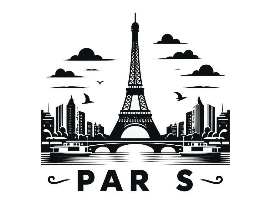 Download Paris City Silhouette with Eiffel Tower logotype PDF vector and SVG logo Vector Format and PNG Transparent Format.