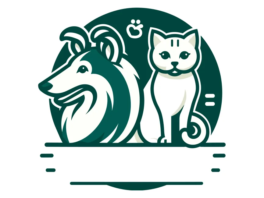 The focal point of this logo is the Collie Dog and Cat gracefully enclosed within a circle. The circular shape represents unity and inclusivity, reflecting the diverse range of pets that your shop caters to. The Collie Dog and Cat, positioned side by side, symbolize a harmonious relationship between different animal companions, conveying a message of peace and coexistence.