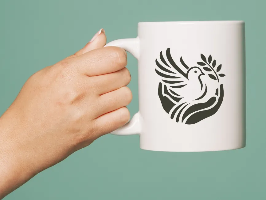Pigeon with Olive Branch Wreath in Human Hands vector logo template SVG, PNG and PDF format Free Download