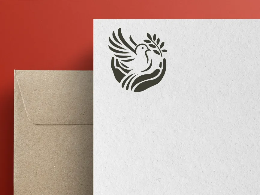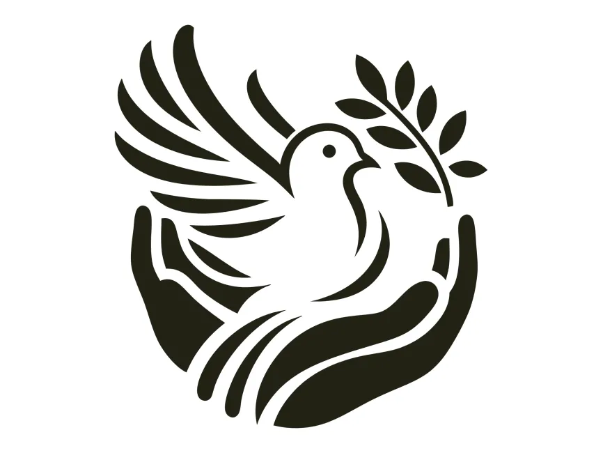 Download Pigeon with Olive Branch Wreath in Human Hands logotype PDF vector and SVG logo Vector Format and PNG Transparent Format.