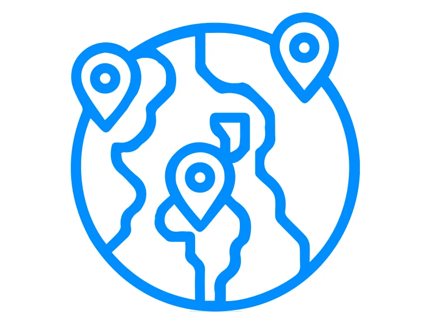 Shape and Structure: Multiple location pins are placed across the globe, indicating various points of interest or locations.