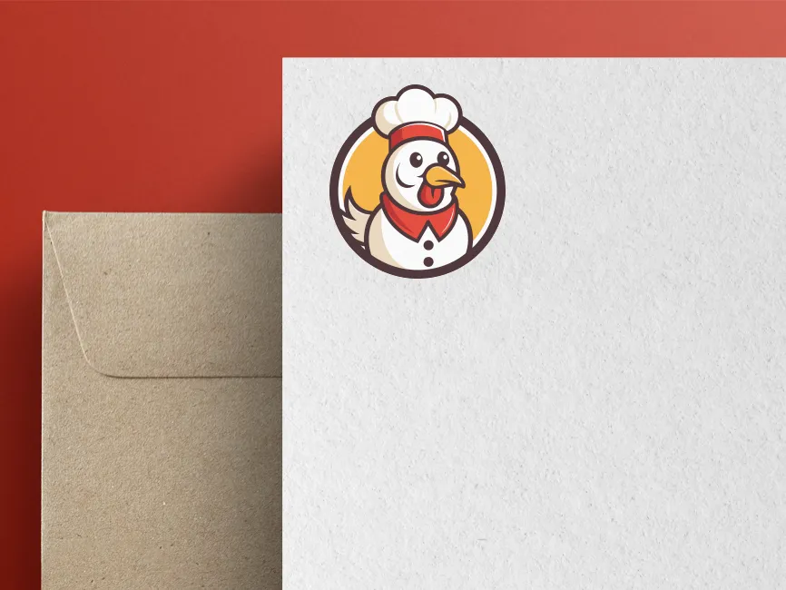 This logo template features a cartoon-style chicken dressed as a chef, making it a great choice for food-related businesses. The design includes a white chicken with a large chef’s hat, a red bandana, and buttoned attire, creating a fun and inviting brand image. The bold outlines and vibrant color palette of red, yellow, brown, and white enhance its visibility and adaptability across various branding materials.