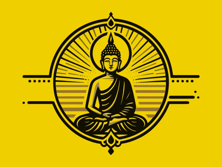 This vector design features a centered, seated Buddha encircled by a radiant halo of symmetrical lines and sacred patterns. Combining minimalist elegance with strong spiritual symbolism, it is ideal for wellness brands, meditation app design, holistic product packaging, and yoga studio logos. The design speaks directly to themes of calm, discipline, focus, and divine light.