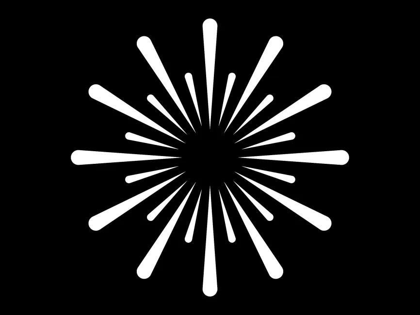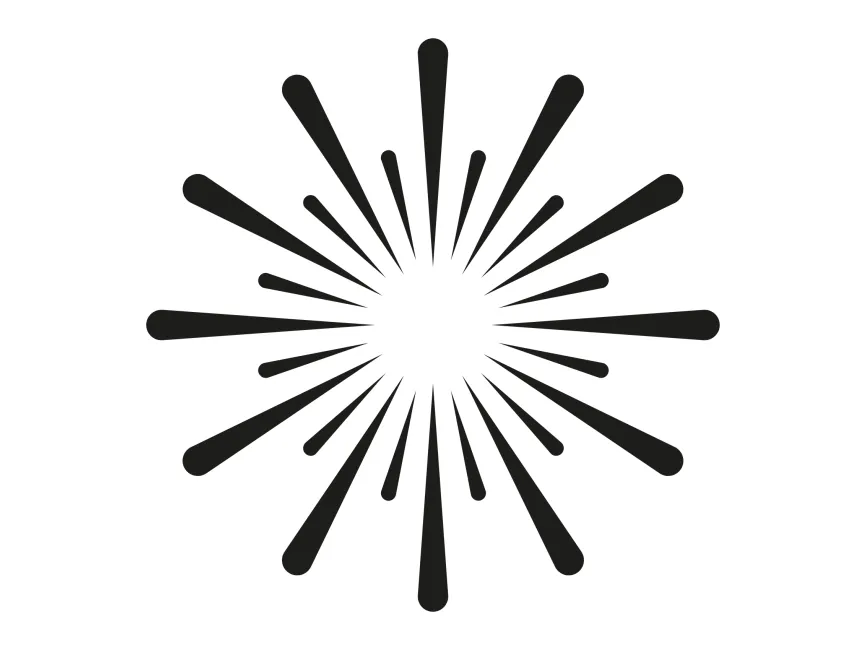 This radiant starburst vector shape features a symmetrical explosion of dynamic lines radiating from a central point. With its varying thickness and rounded edges, the design conveys a sense of energy, motion, and impact, making it an excellent design element for branding, technology, and creative industries.