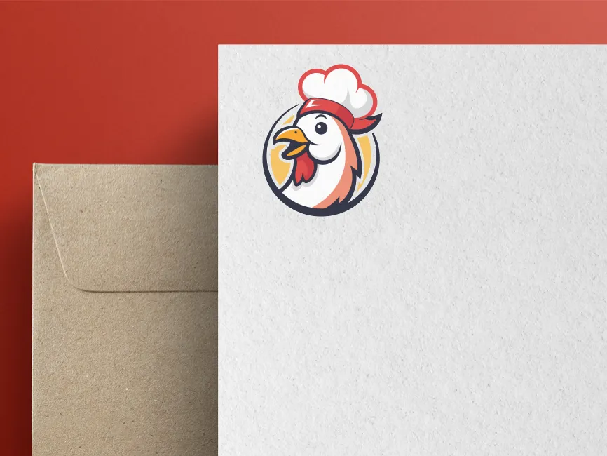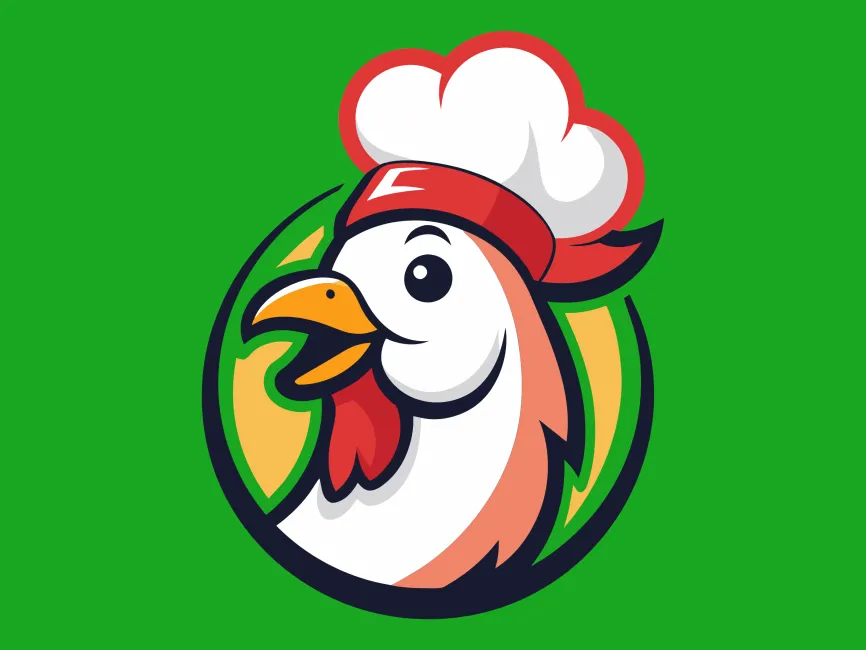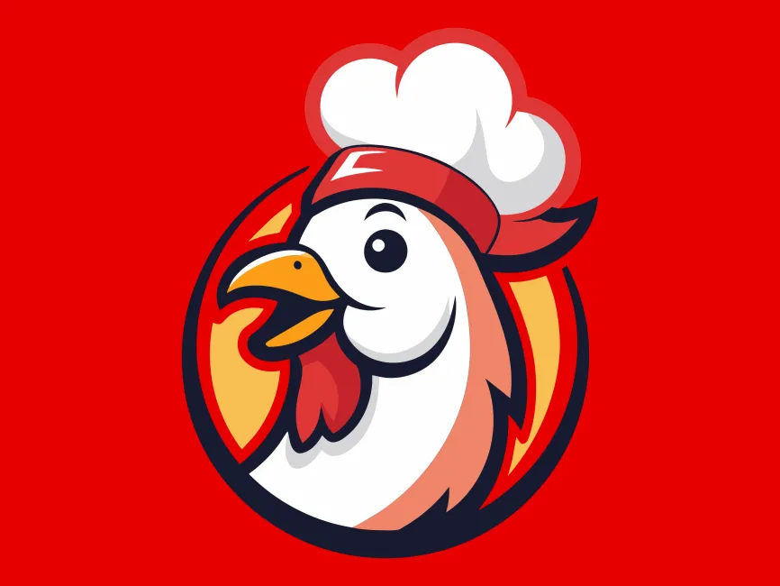 This chicken chef logo features a lively and energetic rooster wearing a professional chef’s hat and a bandana, creating a bold and dynamic visual identity. The clean, cartoon-style illustration makes it an excellent choice for food-related businesses looking for a fun yet professional brand image. The combination of red, orange, black, and white provides strong contrast, ensuring visibility on various branding materials.