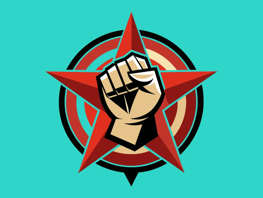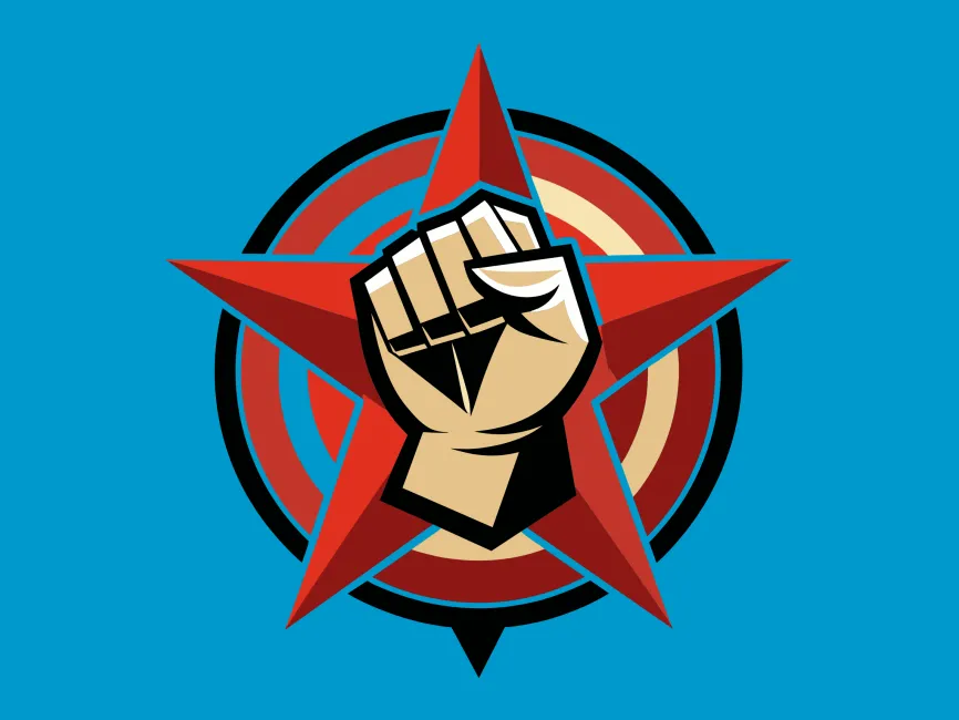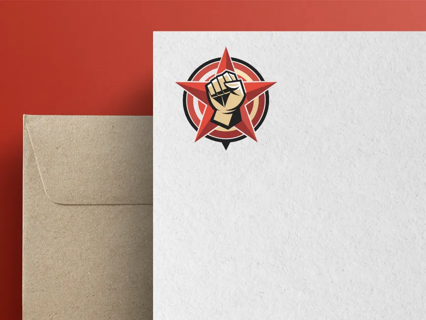 Red Fist Illustration with 3D Star vector logo template SVG, PNG and PDF format free download
