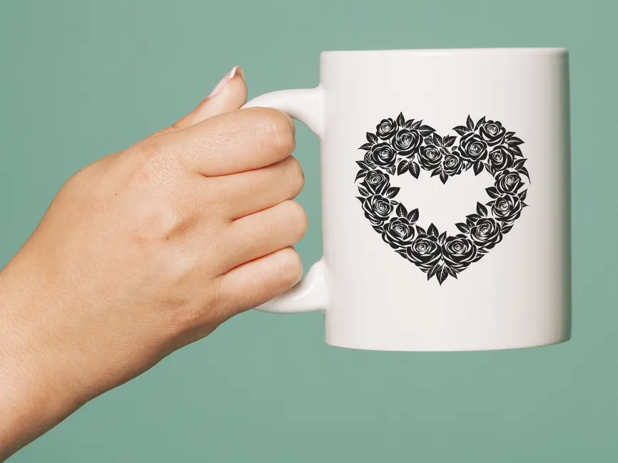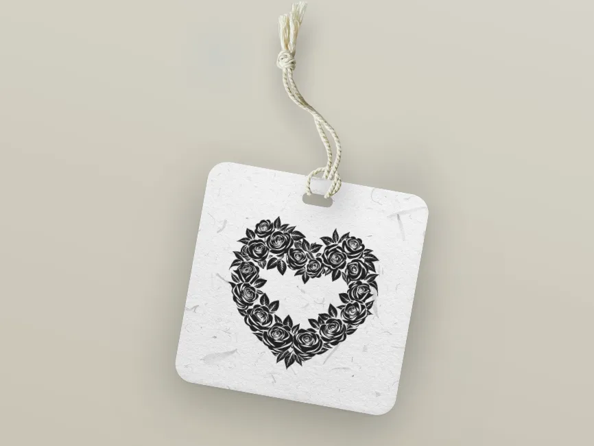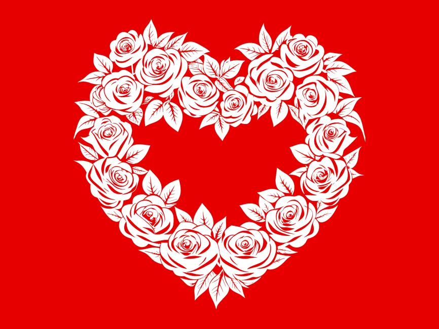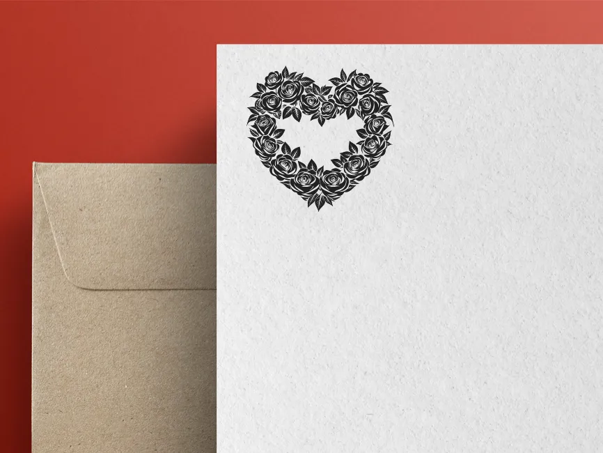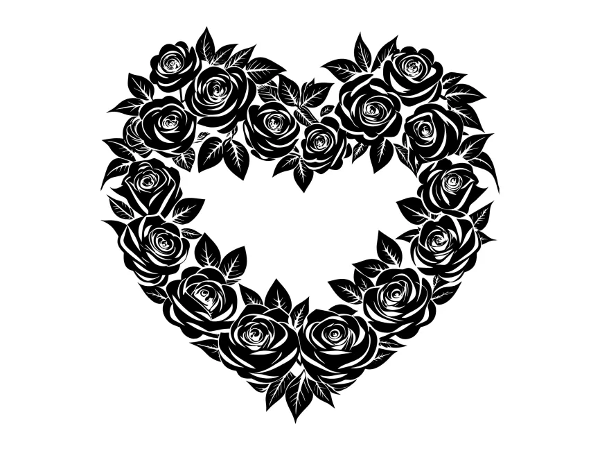 This romantic rose heart wreath is a highly detailed vector shape featuring an elegant arrangement of blooming roses and leaves. Its luxurious and artistic design makes it an ideal visual element for brands that focus on love, beauty, and sophistication, especially in wedding, floral, and luxury industries.