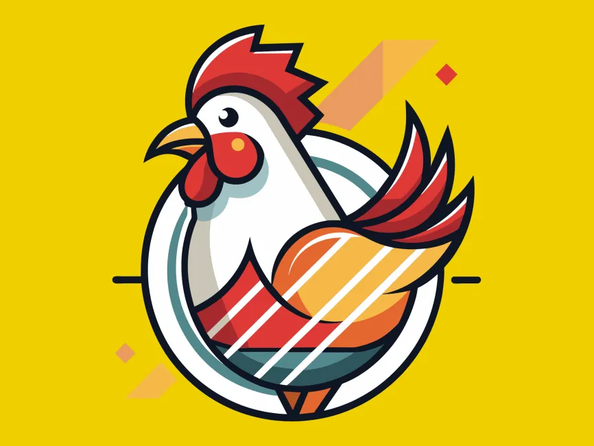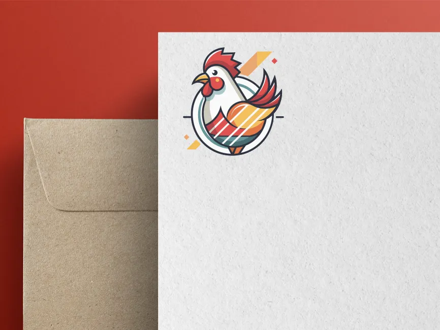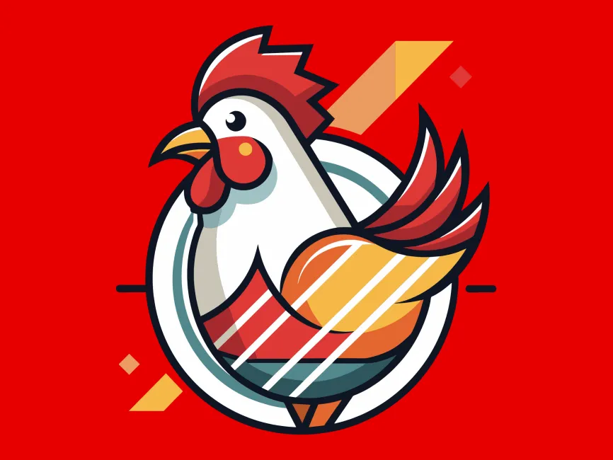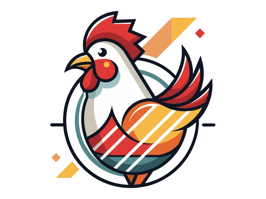 This vector design features a stylized rooster illustration, crafted with a bold and modern aesthetic. The composition incorporates sharp, clean lines and a vibrant color palette of red, orange, yellow, and white, creating a dynamic and energetic appearance. The rooster is depicted with a confident and proud posture, symbolizing strength, vigilance, and prosperity—making it an ideal design for businesses related to agriculture, poultry farms, restaurants, or organic food brands.