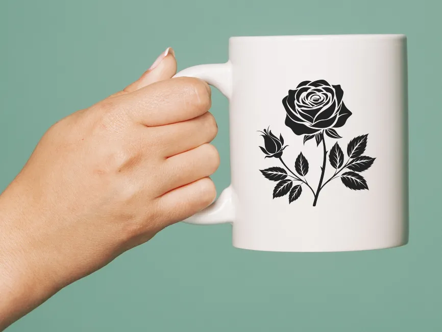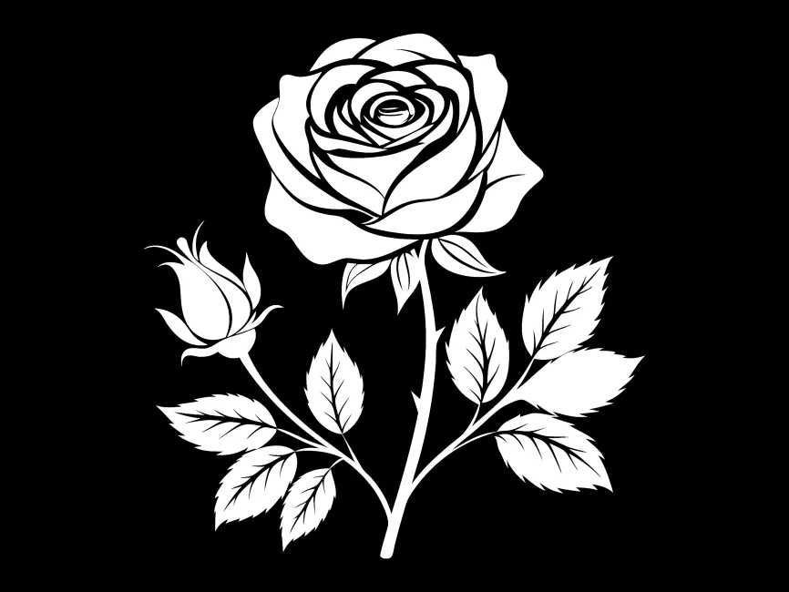 Rose Flower with Stem and Leaves vector logo template(SVG, PNG and PDF format free download
