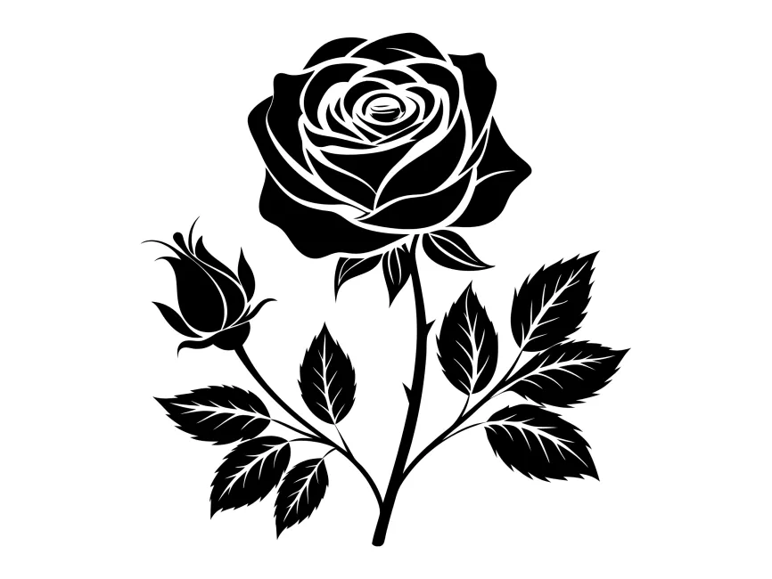 Free Download Rose Flower with Stem and Leaves logo vector SVG, PDF, Ai and other design files