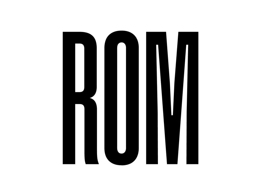 The new ROM logo features a bold, modern, and minimalist typographic approach. The design consists of the museum's initials, "ROM", in an elongated, compressed sans-serif font. The vertical emphasis of the letters creates a strong, imposing presence, symbolizing stability, legacy, and progress.