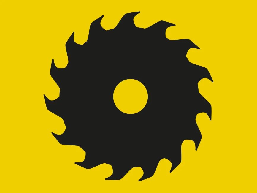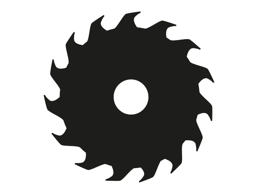 This sharp, circular saw blade design features a jagged, gear-like edge, symbolizing power, precision, and cutting-edge technology. The bold, black silhouette makes it highly recognizable and effective for industrial, mechanical, and tool-related branding.
