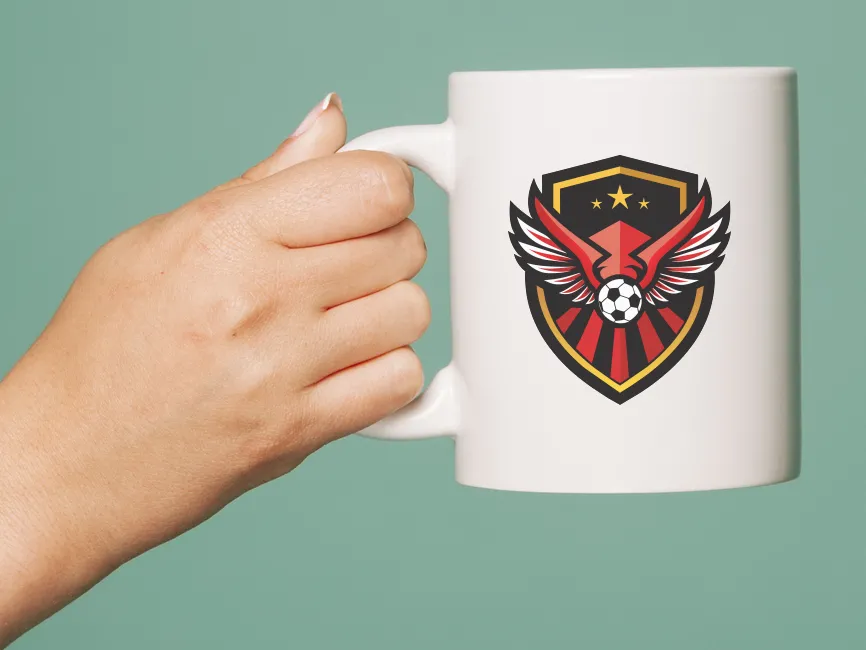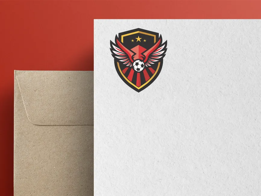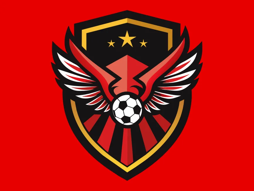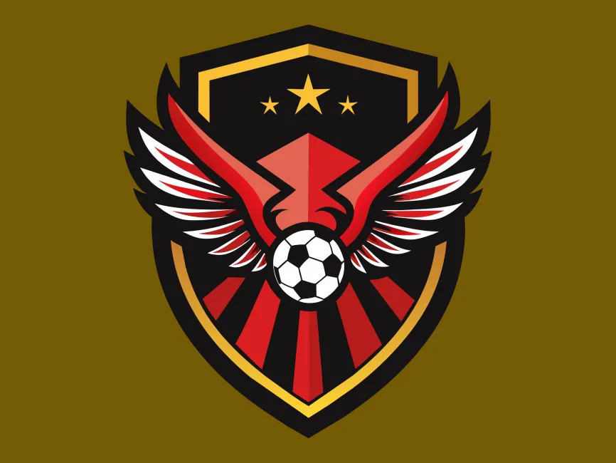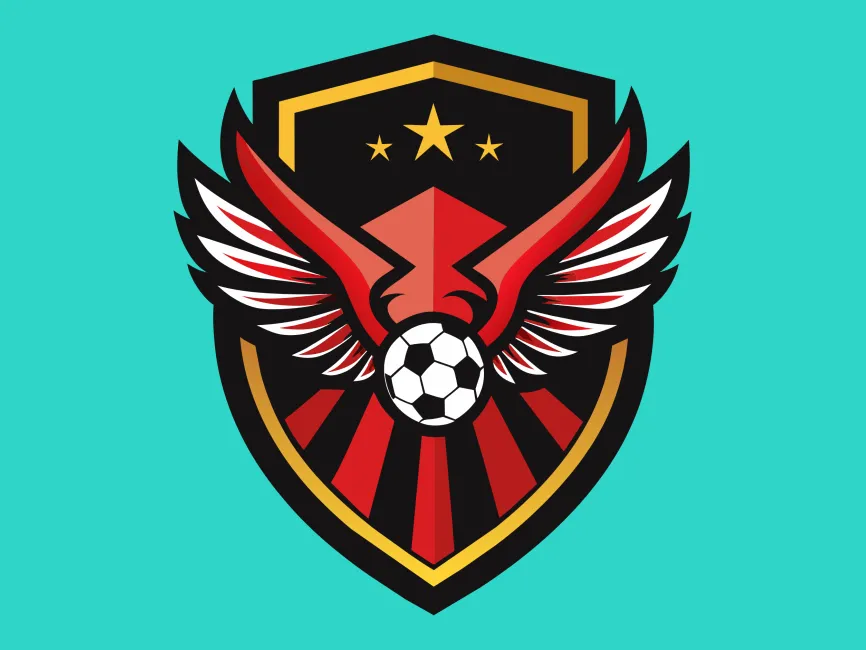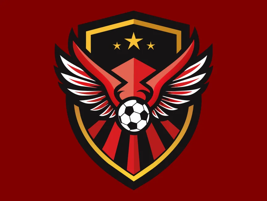 Download Shield Shaped Football Team Emblem with Wings and Ball logotype PDF vector and SVG logo Vector Format and PNG Transparent Format.