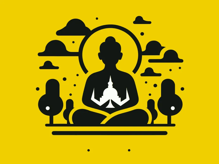Temple Within: The inclusion of a temple silhouette inside the Buddha figure symbolizes the presence of sacred awareness within every individual — ideal for personal development or self-reflection-themed projects.