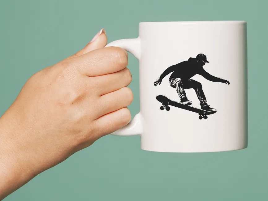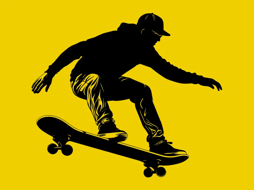 Silhouette of a man in a hat skating on a skateboard logo vector SVG, Ai, EPS, PNG and PDF format.