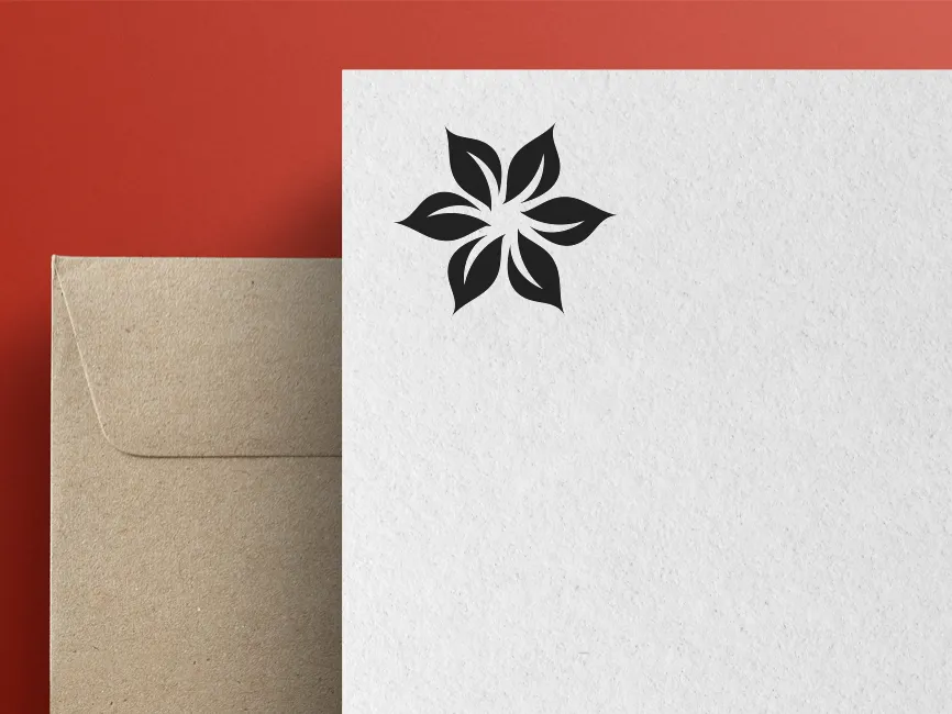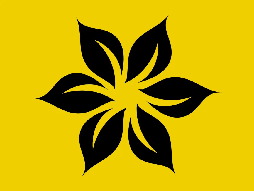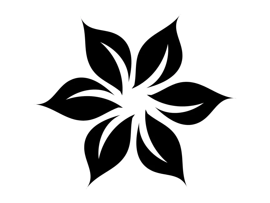 Six Petals Black Flower with Leaves vector logo template SVG, Ai, EPS, PNG and PDF format free download