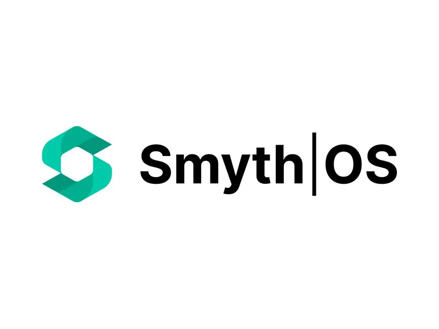 The brand name itself, "Smyth|OS", is rendered in solid black, suggesting authority, clarity, and professionalism. The use of black for the text ensures strong readability and contrast when combined with the teal icon.