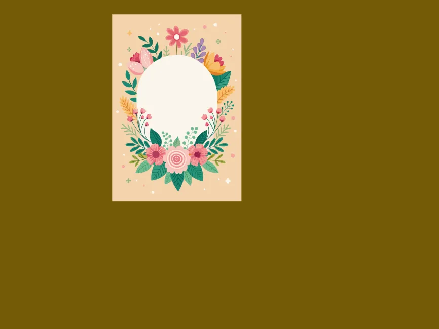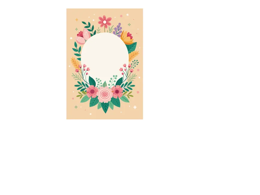 This delightful floral frame illustration features a round central space surrounded by vibrant botanical elements, set against a warm beige background. The soft pastel tones and hand-drawn floral details create an elegant yet playful aesthetic, making it ideal for a variety of creative and decorative projects.