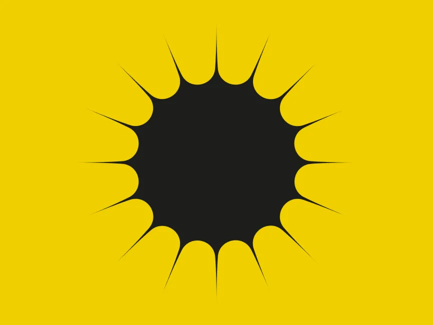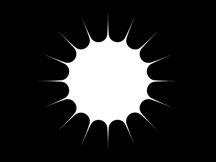 The design is based on radial symmetry, with evenly distributed outward projections that resemble light rays, a sunburst, or an abstract explosion. The combination of rounded and pointed edges gives the shape a sense of controlled energy, symbolizing innovation, expansion, and power. Its clean and modern form ensures versatility in various design projects.