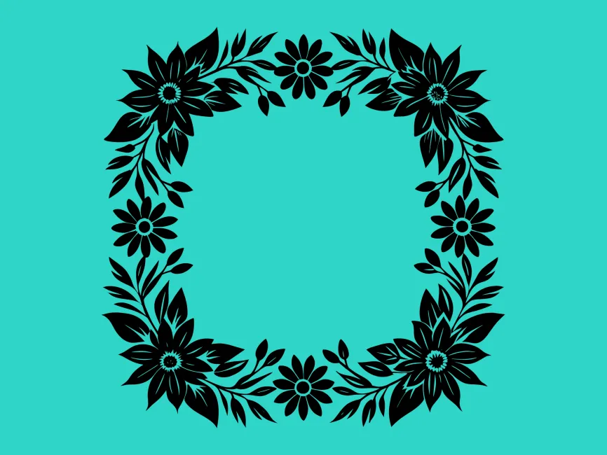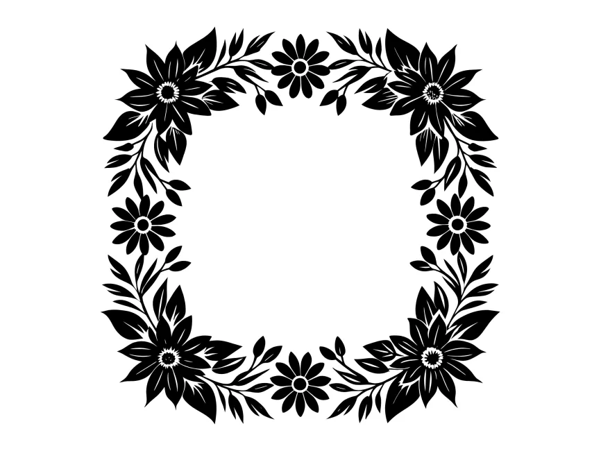 Square Black Floral Frame Border vector design SVG, PNG and PDF format free Download