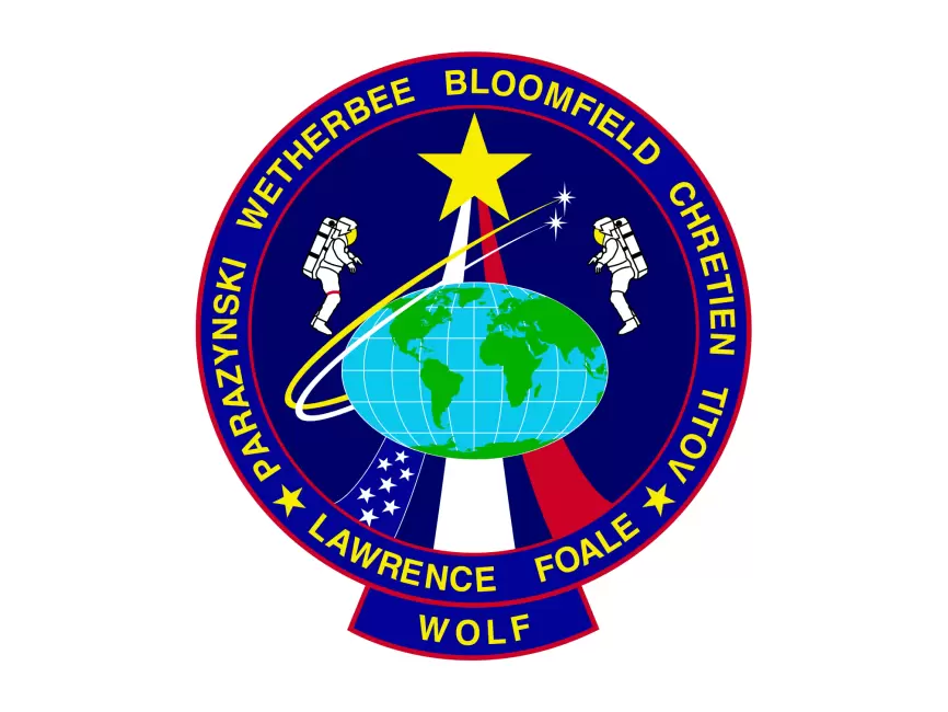 STS-86 was a Space Shuttle mission to the Russian space station Mir launched on September 25, 1997. The mission patch for STS-86 features the Space Shuttle Atlantis and the Russian Mir space station, with a blue and white earth in the background. The patch also includes the flags of the United States and Russia, symbolizing the cooperation between the two countries in the mission. The mission objectives included the exchange of crew members and the transfer of supplies and equipment to Mir. The mission was successful and concluded with the landing of Atlantis at Kennedy Space Center on October 6, 1997.