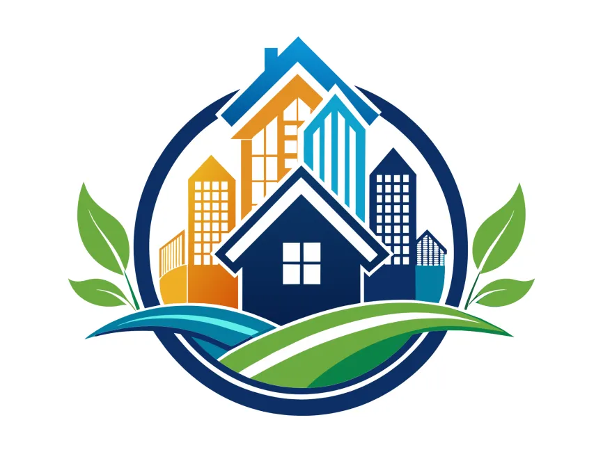 - Main Elements: The logo features a central house with windows, surrounded by high-rise buildings, symbolizing urban and suburban real estate.