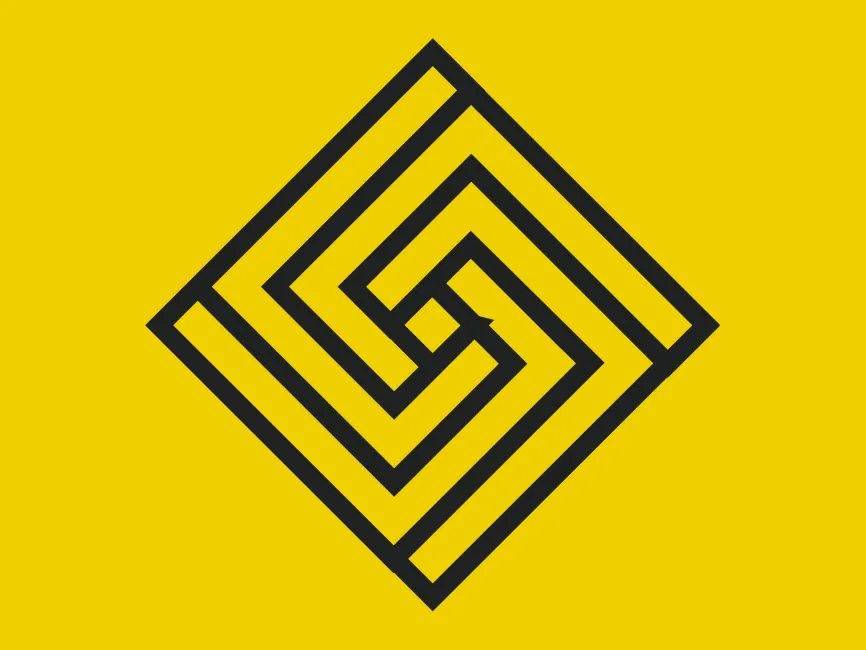 This logo template features a geometric and maze-like design, forming an abstract "S" shape within a diamond structure. The intricate lines and sharp angles create a modern and dynamic visual appeal. The symmetrical composition enhances its professional and futuristic aesthetic.