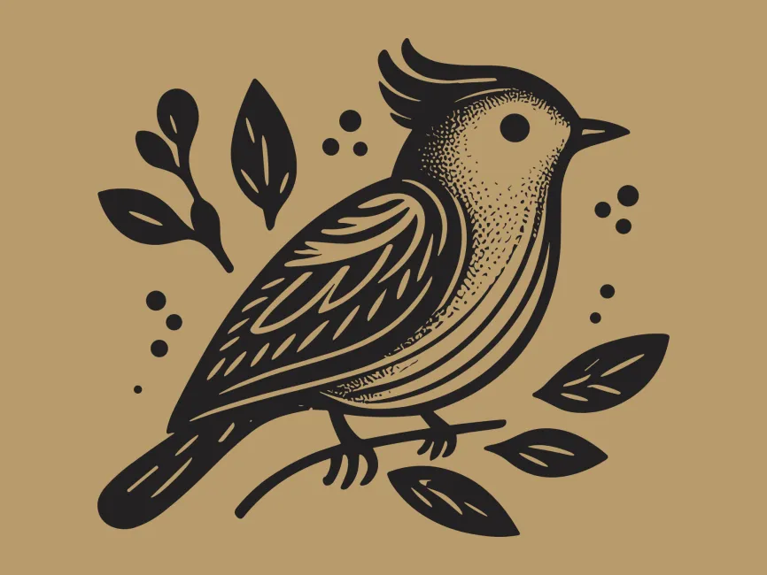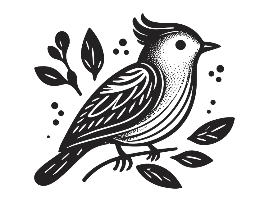 SVG Hand Drawn Bird on Branch with Leaves vector logo template (SVG, Ai, EPS, PNG and PDF format) Free Download