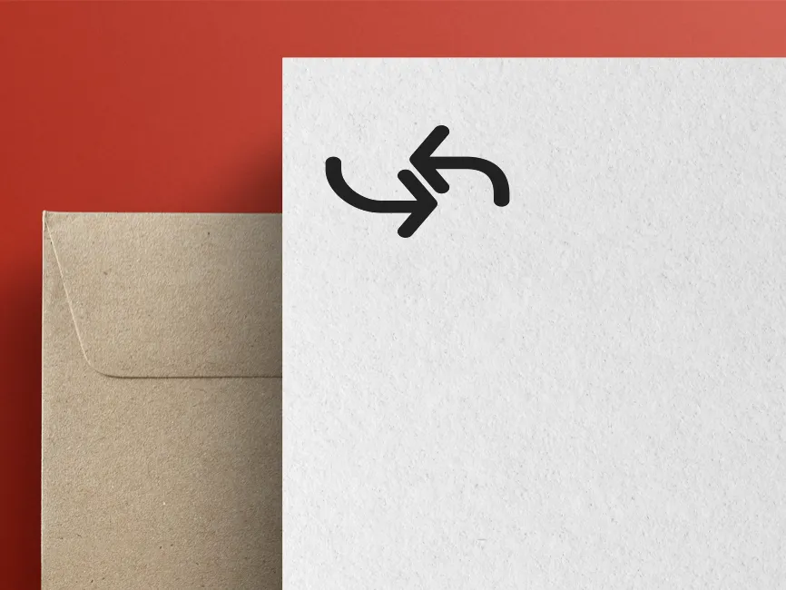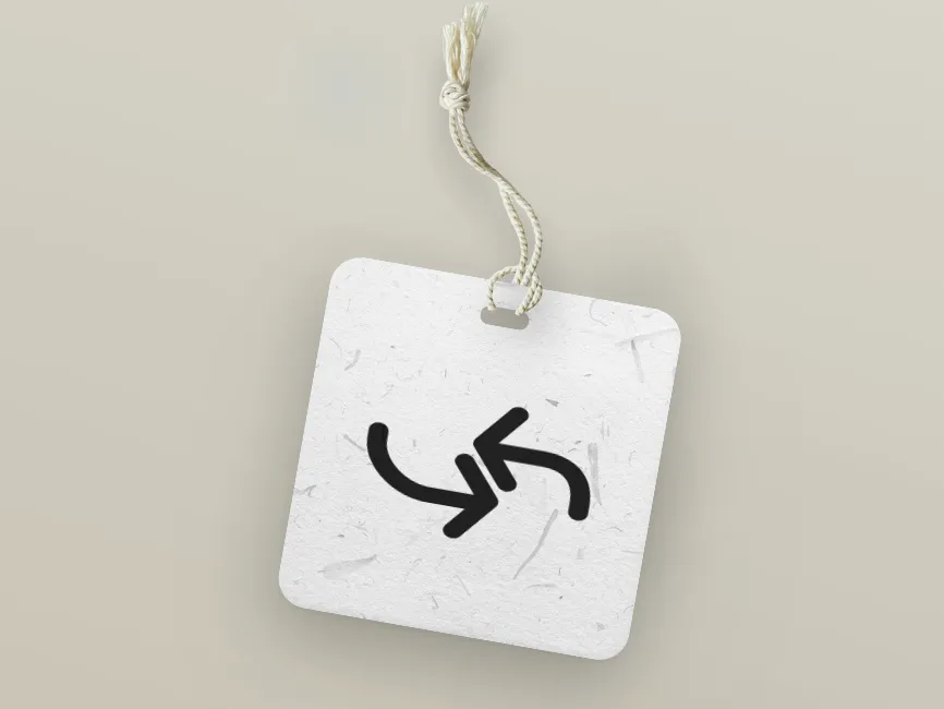 A rounded leftward curve leading into an upward-left arrow, symbolizing an incoming or backward direction,