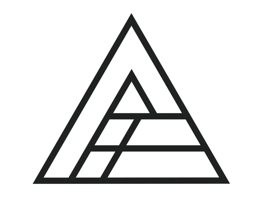 This logo template features a geometric and minimalist triangular design with a stylized letter "A" incorporated within. The lines and segments within the triangle create a structured and modern look. The use of thin, evenly spaced lines enhances the overall symmetry and balance of the design.