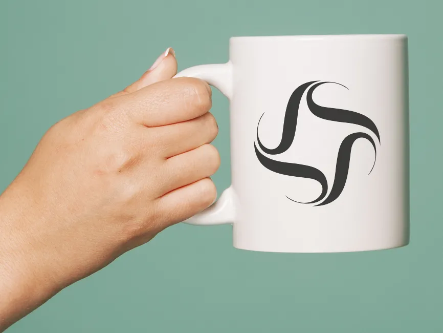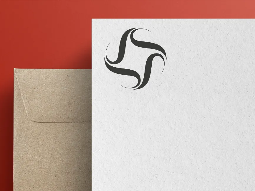 The Twisting Motion shape consists of four identical curved elements, arranged in a rotational symmetry. The design creates a swirling effect, reminiscent of motion, wind, or an abstract letter "S." The thick, bold strokes contrast with the negative space, enhancing its modern and professional appearance.