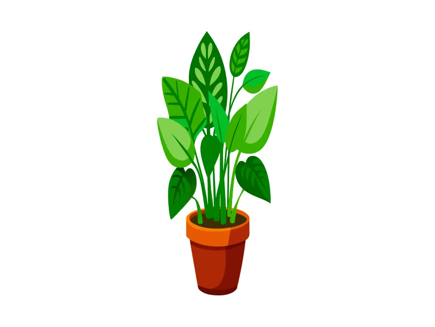 This vector design features a lush potted plant with a variety of vibrant green leaves, creating a natural and refreshing aesthetic. The carefully crafted details in the foliage, along with the terracotta pot, make it an ideal choice for eco-friendly branding, botanical illustrations, gardening websites, and nature-inspired projects.