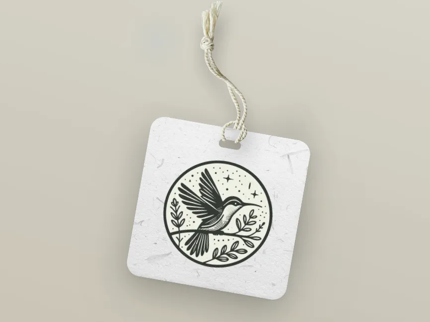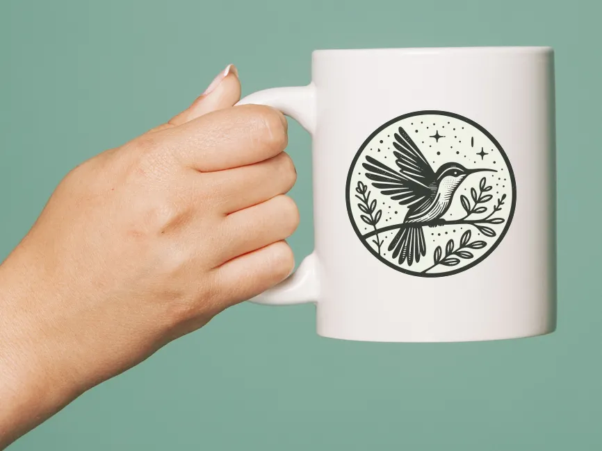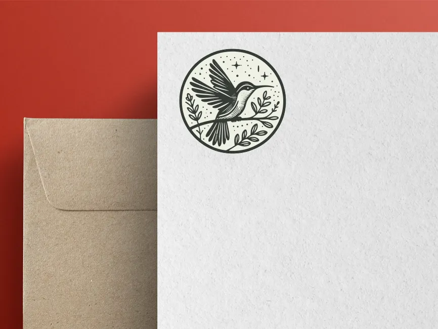 This logo template features a highly detailed hummingbird perched on a branch, enclosed within a circular frame. With its wings spread mid-motion and a focused gaze, the bird communicates both energy and elegance. The surrounding stars and foliage enhance the design’s organic and celestial qualities, giving it a poetic and artistic flair.